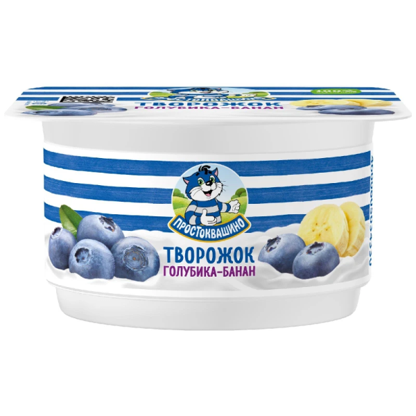 БЗМЖ Творожок Простоквашино голубика-банан 3-6% 110гр